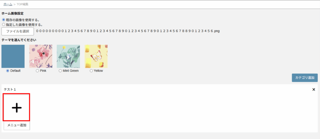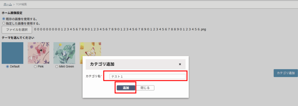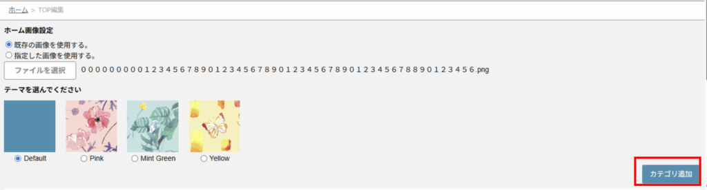 ホーム>「編集」ボタンから、「カテゴリ追加」画面にアクセスします。