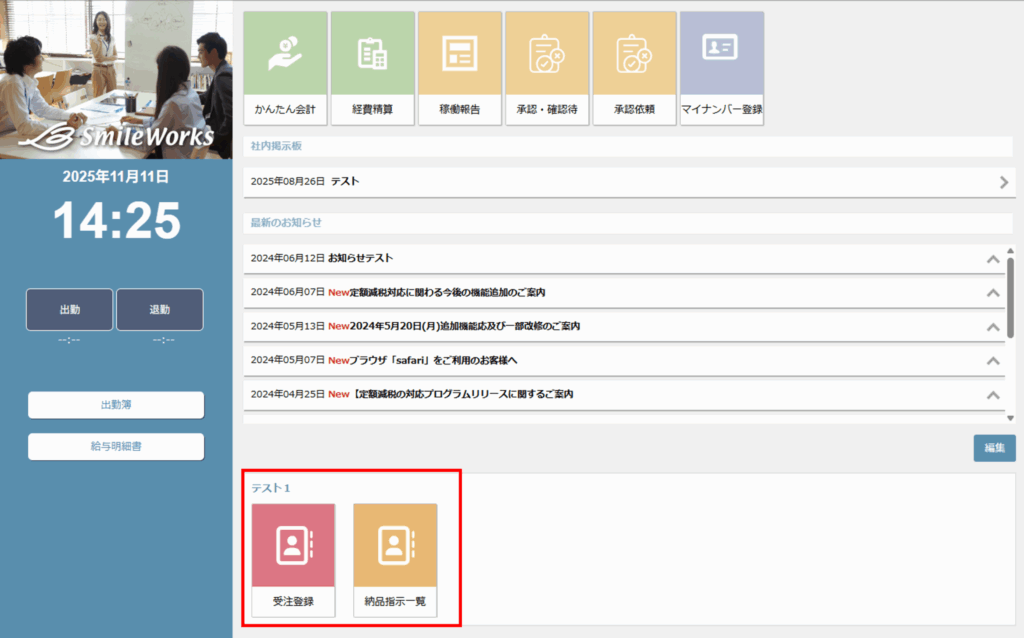- ホームにて任意のアイコンをクリックすると、対象の画面に遷移します。