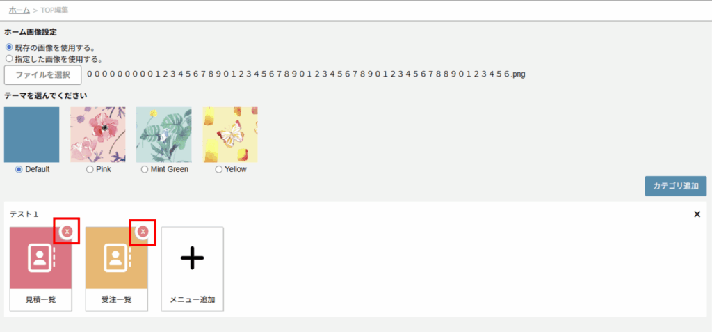 ・カテゴリを削除したい場合 右上の「×」をクリックします。