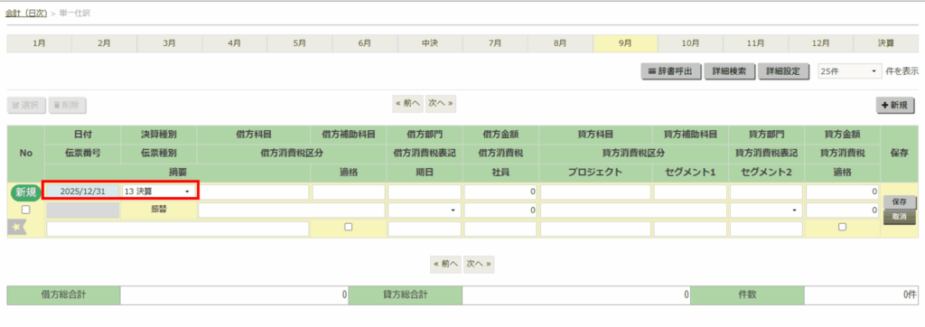 ※この時に、日付が会計期間の最終日の日付となります。