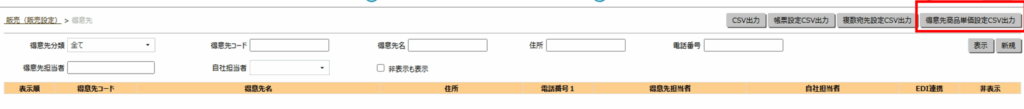 - 「得意先商品単価設定CSV出力」ボタンをクリックします。