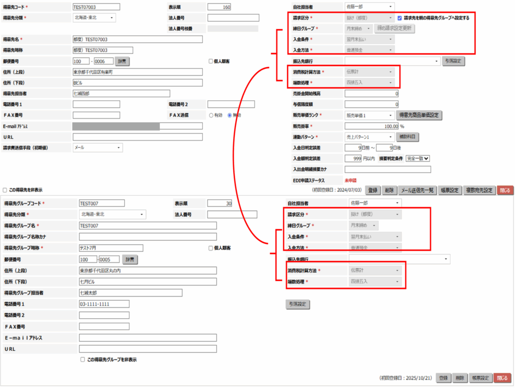 - 得意先の設定項目で、「請求先を親の得意先グループへ設定する」にチェックを入れてください。