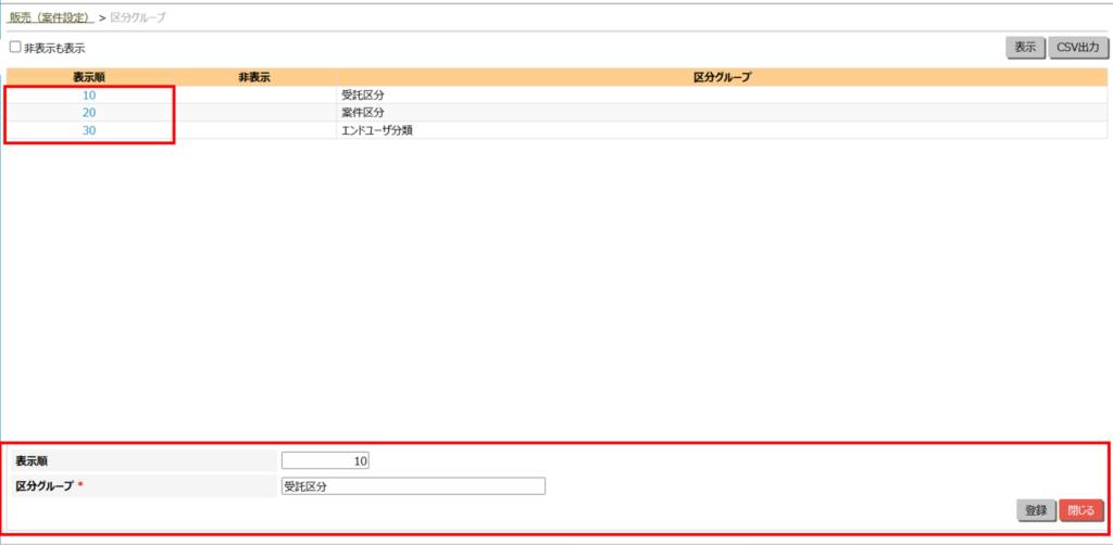 ・(表示順)の青い数字をクリックすると、登録されている情報が表示されます。
