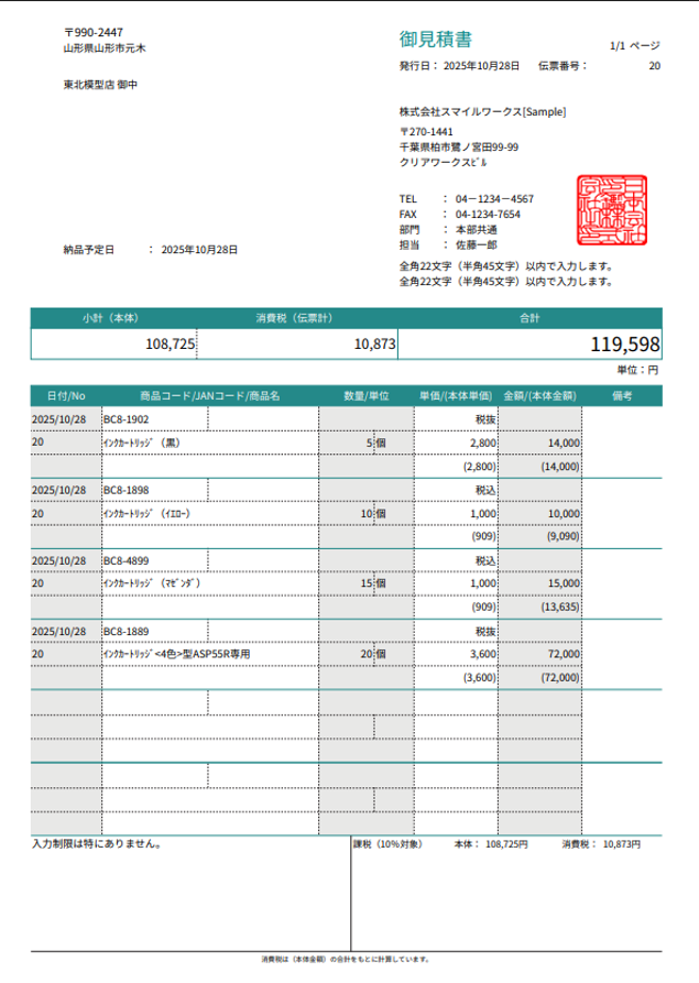見積書を印刷する