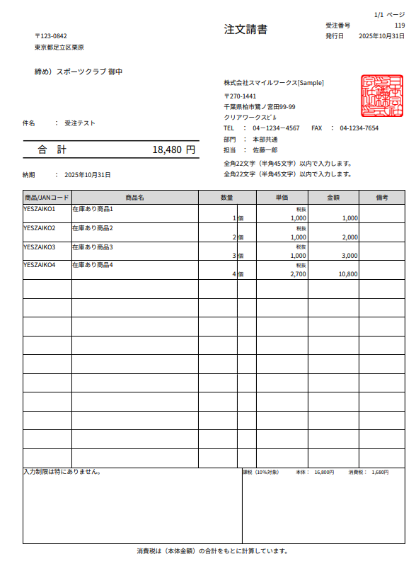注文請書を印刷する