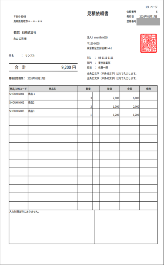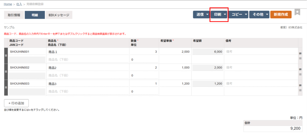 見積依頼書を印刷する