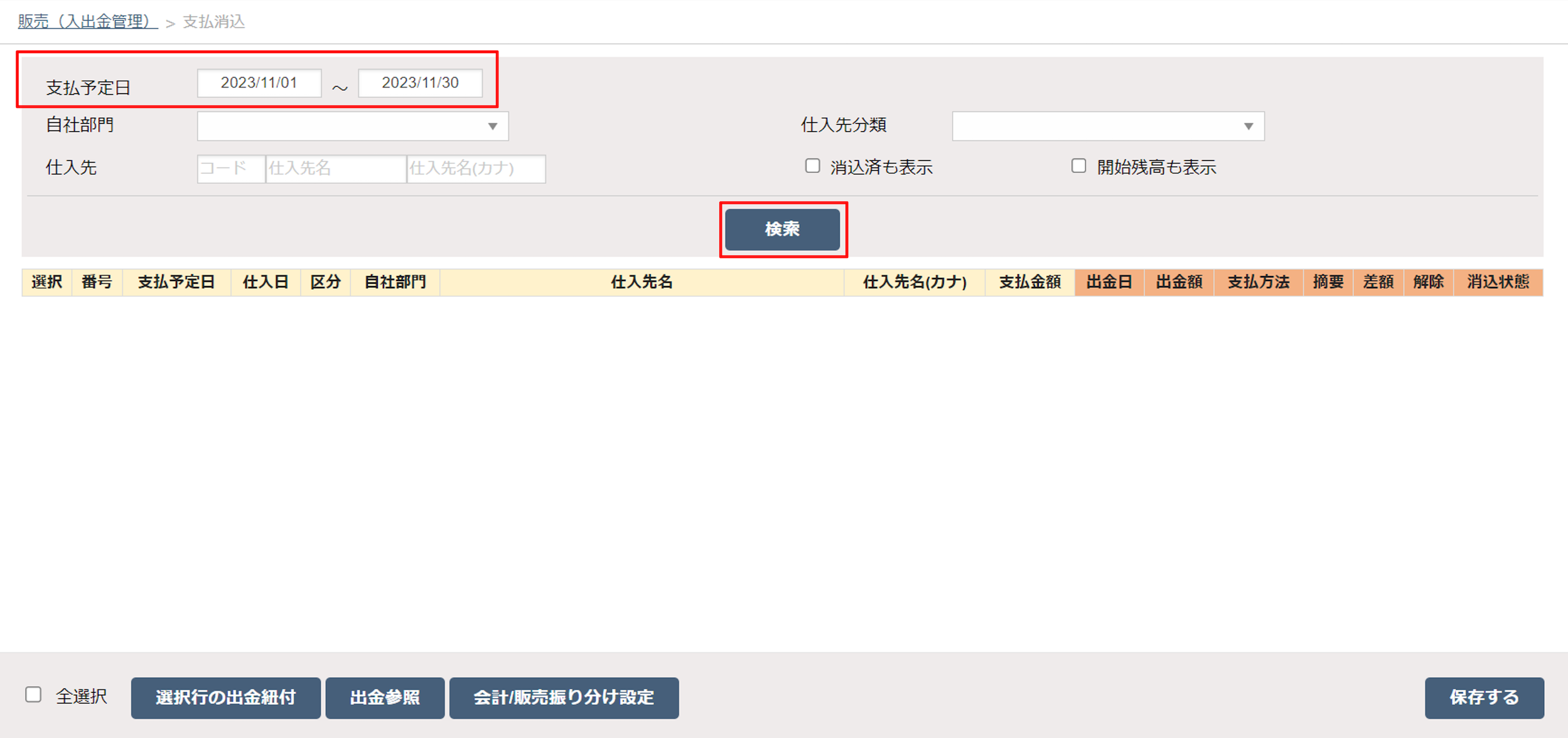 自社が商品を買う=代金を支払う側になり、システムでは自社から「仕入先」に対して行います。