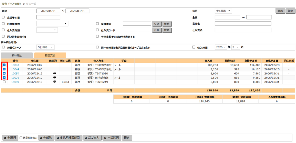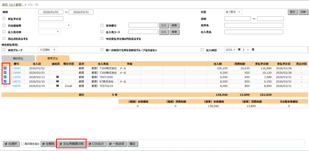 支払一覧から発行する(複数の支払明細書を一括で印刷する)