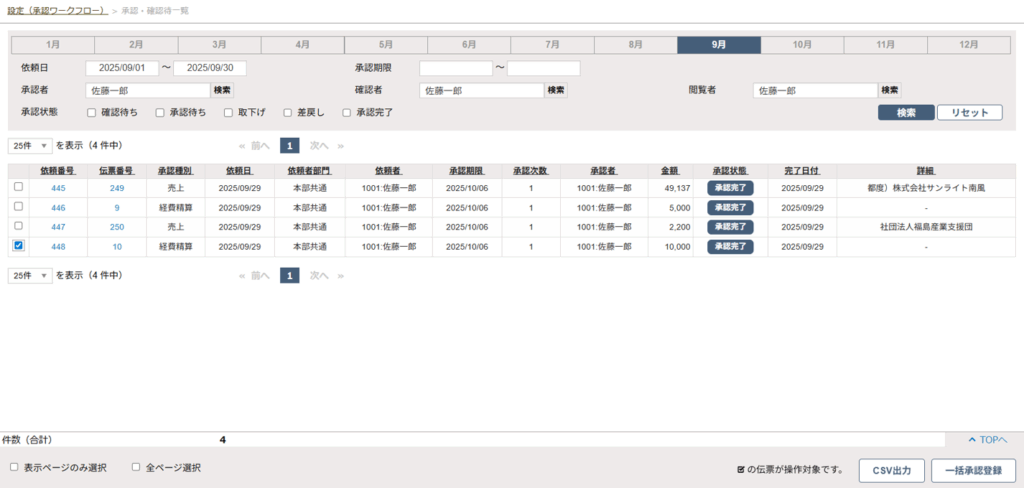 - 承認完了すると、承認・確認時一覧に反映されます。